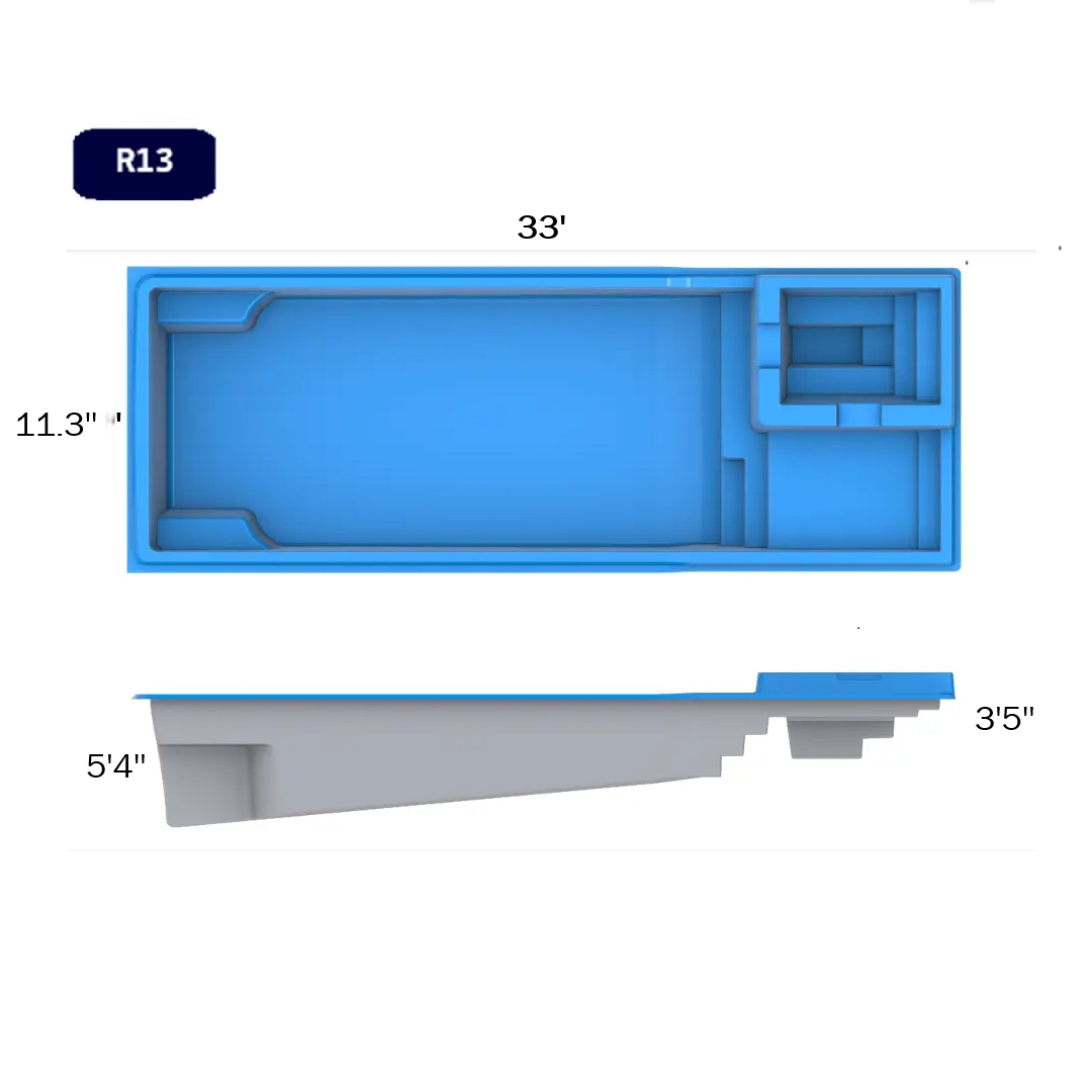 Width: 12′ Lenght: 33′ Depth: 5’4